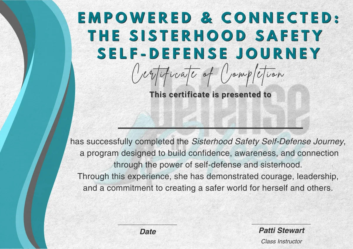 An online Sisterhood & mini self-defense class taught by certified instructors (the only thing left is your action step, and we provide ideas)